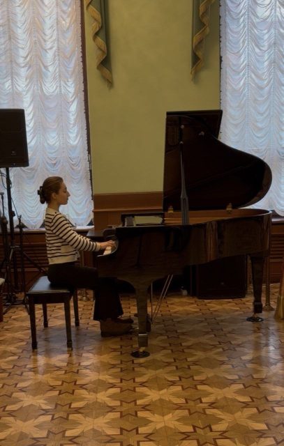 Концертмейстер школы Анастасия Тороп выступила с сольным номером, познакомив зрителей театра с творчеством Ф.Шуберта.