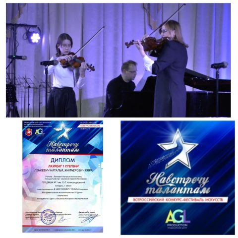 В номинации «Инструментальное исполнительство/струнно-смычковые инструменты» в категории «Мастер+ученик» удостоены Диплома лауреата I степени Ленкевич Наталья Анатольевна и учащаяся Жалнерович Кира, концертмейстер Кирилл Николаевич Шупилов!