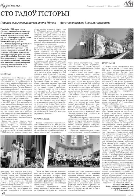 Газета «Лiтаратура i мастацтва» об истории и перспективах Детской музыкальной школы искусств №1 имени Л.П. Александровской:
